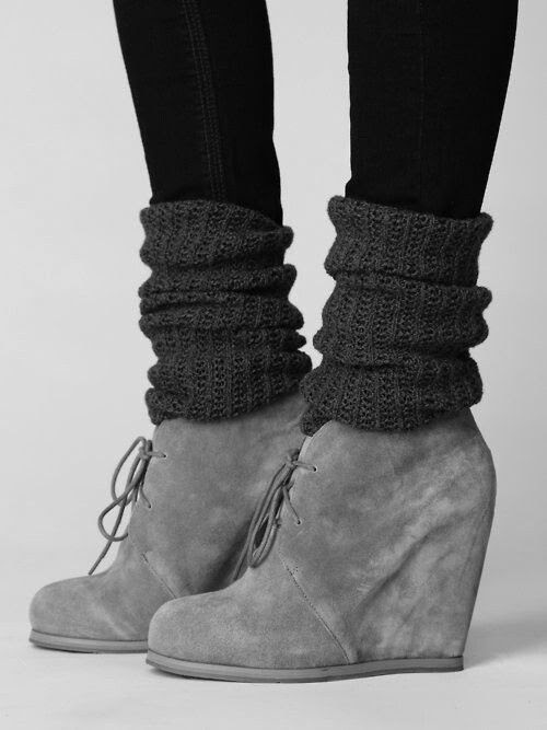 Grey laced up Wedges with a Sloping Heel. Paired with leg warmers and stockings. Perfect for the winter season.